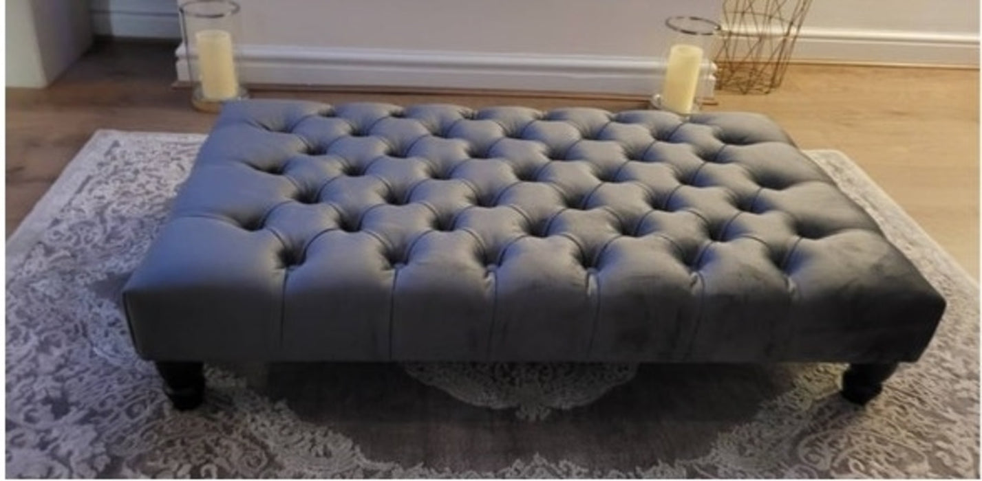 Luxury Large Chesterfield Footstool/Coffee Table in Crushed Velvet and plush Fabric